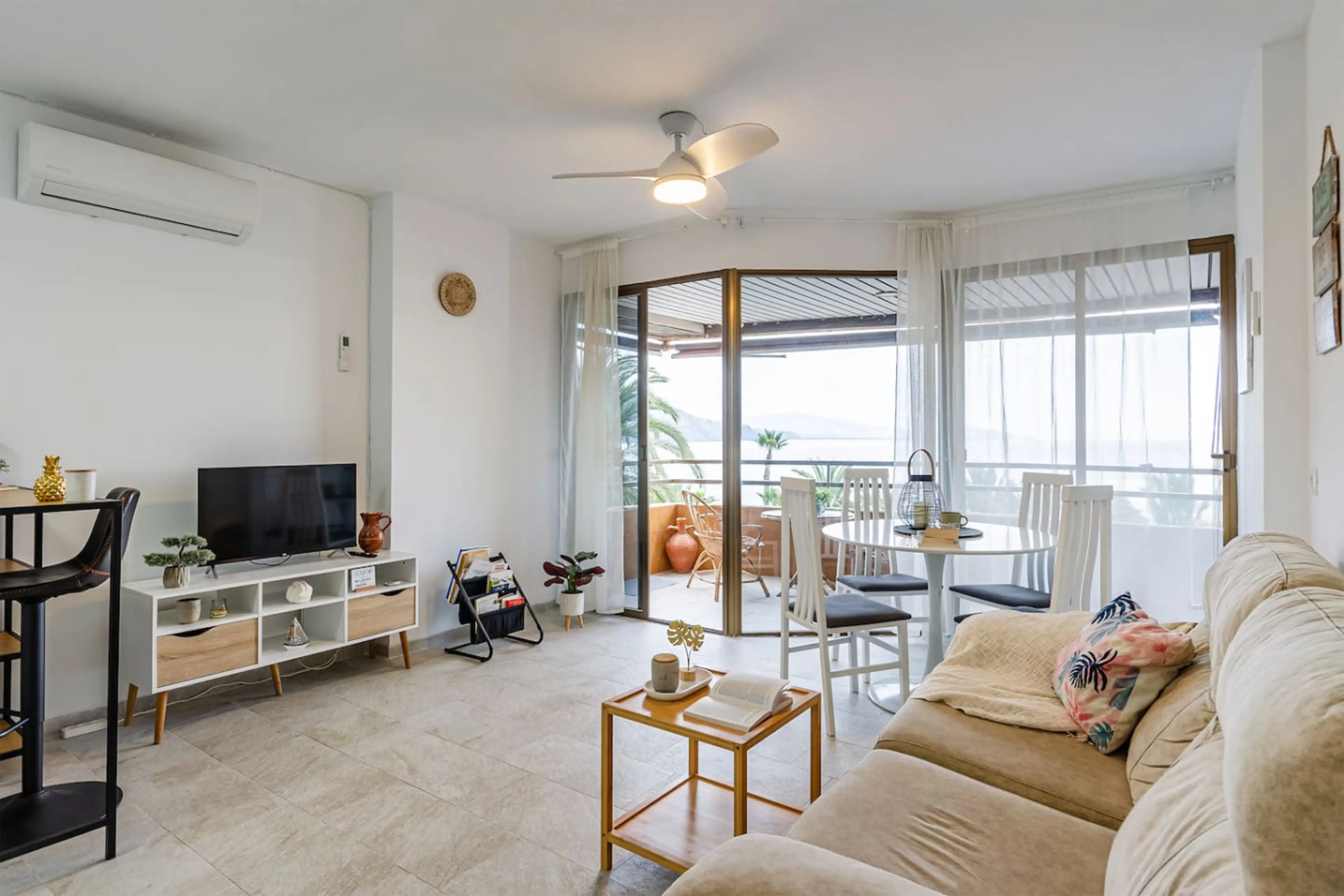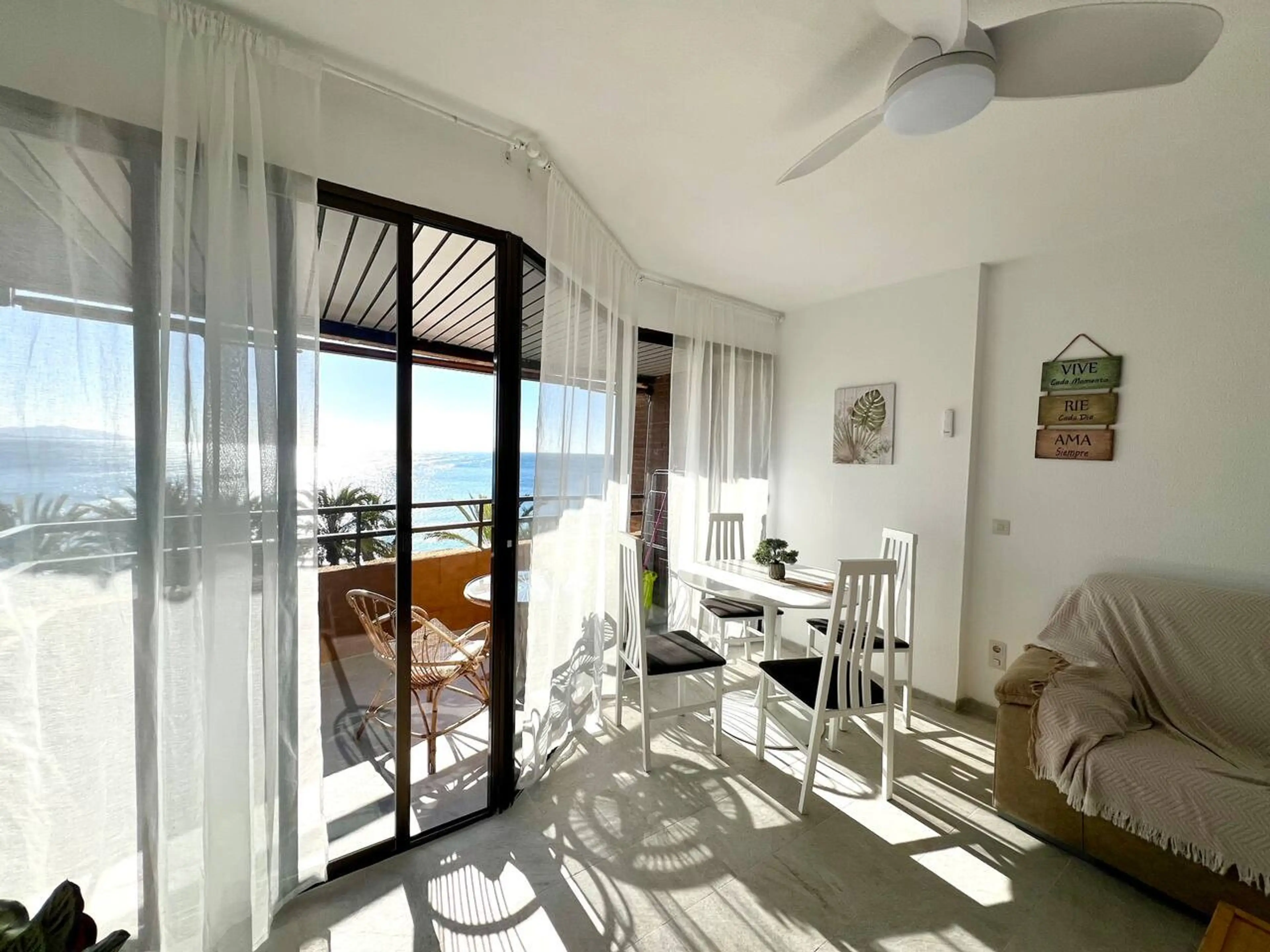 Bright and airy apartment right on Playa de Velilla beach with fantastic sea views. This air-conditioned holiday apartment with access to a cozy balcony consists of one bedroom and a fully equipped kitchen. The apartment also features a washing machine and a flat-screen TV. Free Wi-Fi is available...
